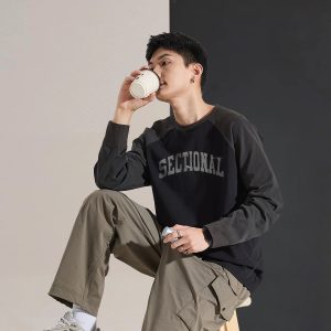 Be the first to review “Autumn Men’s Long-sleeved T-shirt Top Men’s Crewneck Front Chest Text Printed Raglan Sleeves”