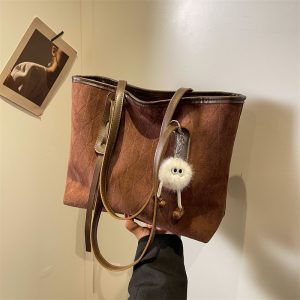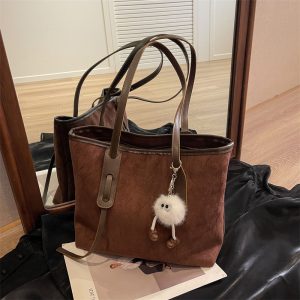 New Autumn and Winter Versatile Shoulder Bag Frosted College Student Commuting Tote Bag for Women Color: Brown with pendant Style: street trend Length (cm) 33 Width (cm) 12 Height (cm) Volume(cm³)9108